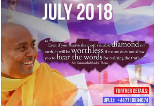 Siri Samanthabhadra Maha Thero's will be visiting the United Kingdom in July 2018.