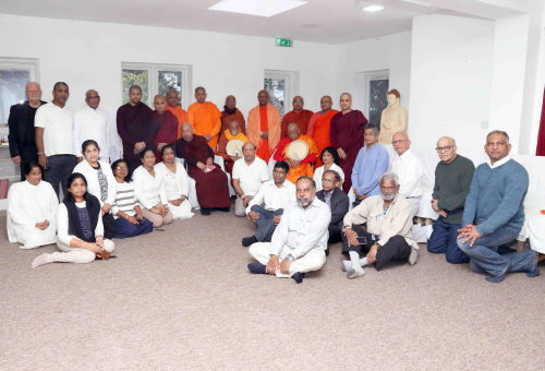 The high level Buddhist delegation, who visited London to participate in the Kathina ceremony at the Sri Sambodhi Meditation...